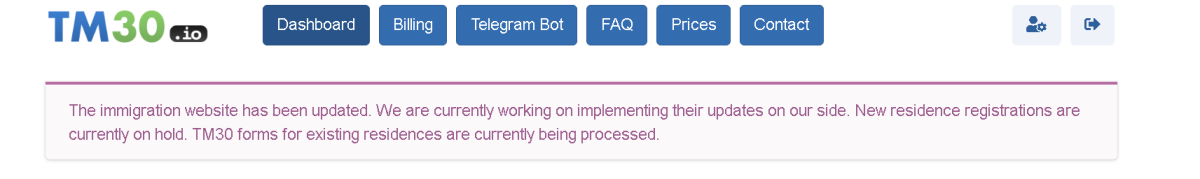 Just check the site again this morning (18/11) and still showing the :- (The immigration website has been updated. We are currently working on implementing their updates on our side. New residence registrations are currently on hold. TM30 forms for existing residences are currently being processed.)