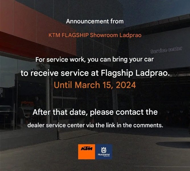 I believe all official KTM dealerships pulled out of Thailand (the last one closed last year as far as I know). There may still be an importer somewhere (not necessarily Chiang Mai), but I don't think you'll find an authorized dealership anywhere. This is a translation of their announcement (which is why it says 'car' instead of 'bike'), and I'm pretty sure this was the last one in the country.