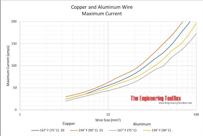 FWIW, here's a handy ampacity chart comparing copper and aluminum wires in metric sizes. Keep in mind the X axis is logarithmic.