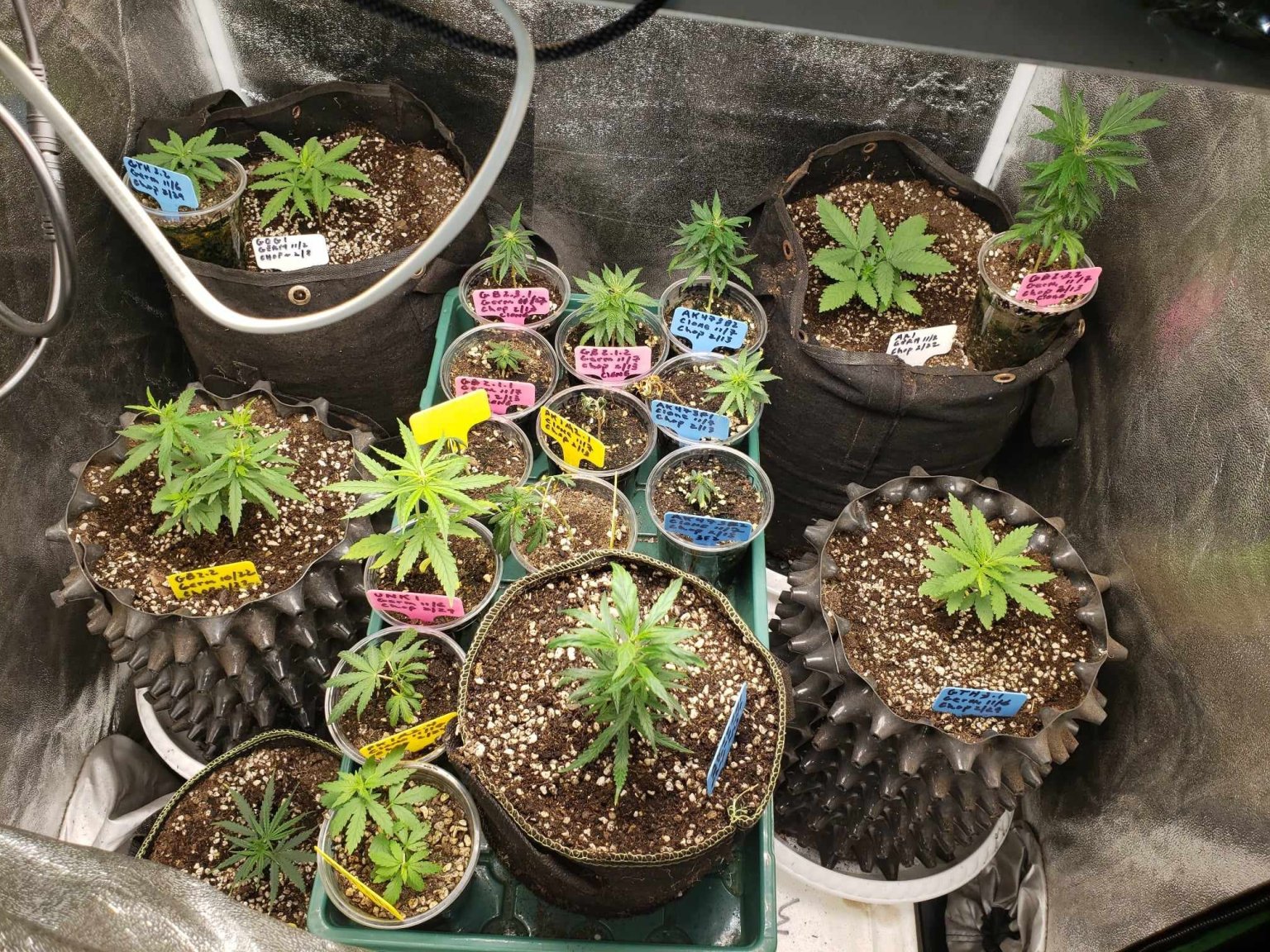 14. My current girls. Will harvest ~1 plant/every 2 weeks, now thru March 2024 4X4: Gorilla Bomb, AK47, and Pink Kush. 2X4: Gorilla Bomb, AK47. 3X3 baby tent: Amsterdam Amnesia (new), Glueberry OG (new), Ghost Train Haze, Gorilla Bomb, AK47, Pink Kush, and some unknown strain gifted to me.