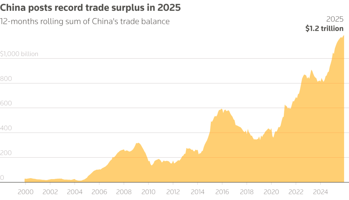 China’s Trade Surplus Hits Record $1.2 Trillion Despite Tariffs China has defied global trade pressures to post a historic trade surplus of $1.19 trillion for 2025, proving that its export engine remains resilient even in the face of aggressive U.S. tariffs. While the second Trump administration hiked duties to curb Chinese imports, the world's second-largest economy successfully pivoted its focus to new markets and high-tech sectors. A Global Export Juggernaut The year-end data reveals a striking irony: while U.S. tariffs were designed to shrink China’s trade dominance, the country’s global surplus actually surged by nearly 20% compared to 2024. In December alone, exports grew by 6.6%, fueled by a massive shift in trade routes. Instead of relying solely on the American consumer, Chinese manufacturers ramped up shipments to Southeast Asia, Africa, and Latin America. This diversification strategy effectively offset the 20% drop in exports to the U.S. and solidified China’s role as the "factory of the world." High-Tech and Green Energy Lead the Way The composition of China’s exports is also evolving. The nation has moved beyond simple manufactured goods, with electric vehicles (EVs), semiconductors, and ships driving the latest growth. In 2025, pure EV shipments surged by nearly 50%, ensuring China remained the world's top auto exporter for the third year running. However, this "export flood" has caused growing pains. Low domestic demand—driven by a property market slump—means China is producing far more than its citizens can consume. This imbalance has sparked concerns of "overcapacity" in Europe and other emerging economies, leading to a new wave of protective measures beyond Washington. Key Takeaways Historic Growth: China’s 2025 trade surplus hit a record $1.19 trillion, roughly equivalent to the GDP of a top-20 global economy. Strategic Pivot: Despite a sharp decline in trade with the U.S., China compensated by deepening ties with the "Global South" and the EU. Tech Dominance: High-tech sectors like electric vehicles and semiconductors have replaced traditional goods as the primary drivers of export growth. Adapted From https://theconversation.com/have-us-tariffs-failed-to-bite-chinas-trade-surplus-hits-a-record-us-1-2-trillion-273658