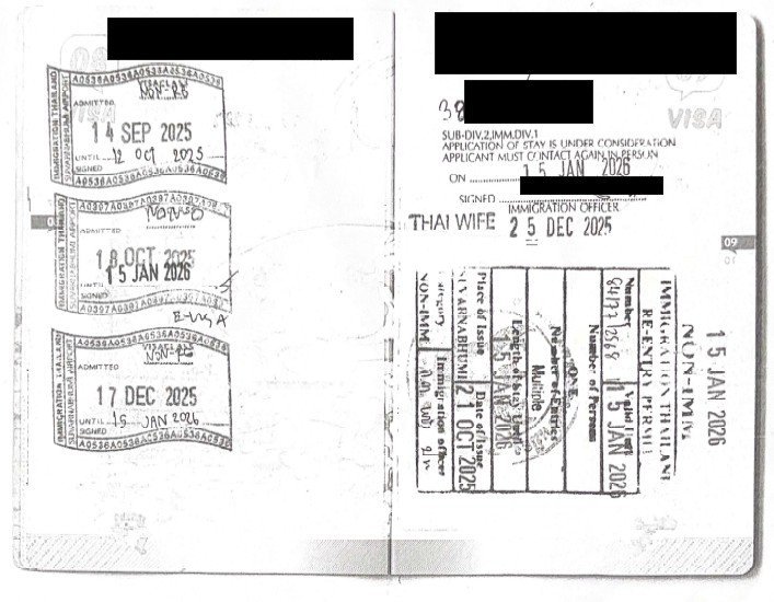 I have gotten lots of usefull info here, so I wil (hopefully) give some actual experience back. Just received my "under consideration" stamp, so I will list which documents are needed. Do note I went with an agent (not one of those visa agents, but an immigration lawyer at the law office I also use to do all my company work and accounting). A. Documents needed from me 1. Original passport (with visa stamp or the print-out of the E-visa) 2. Scanned TDAC 3. Three (3) photos of applicant size 4x6 cm. only look straight, no hat and sunglasses updated not more than six months (white background) 4. Scanned update receipt of Residency Notification (TM.30) 5. Original marriage certificate ( Kor.Ror.3 ) 6. Original family registration ( Kor.Ror. 2 ) 7. Certified family registration (Kor.Ror.2) by District Office (version update as of 2025) with the original receipt of certification, valid for 1 month from the issuance date If you need our assistance, we will be able to assist you by requesting a certification of those documents at the District Office. Our service fees will be at 2,500 (+ VAT) 8. Original lease condo agreement, housbook of the condo, housebook of the owner and ID card of the owner (copies of course, no originals of those needed). 9. Scan photos with the family (Two actions per each item, the applicant and his wife must be in every photo): The applicant and family in front of your room number (condo) The applicant and family in the dining room, kitchen, and bedroom etc. 10. Original bank book; showing no less than 400,000 Baht in your personal bank account for at least three months prior to the visa application date. 11. Bank Statement covering the past 1 year (valid for 7 days from issuance) 12. Confirmation Letter (to confirm your account balance) from the bank (valid for 7 days from issuance) 13. Update bank book on the visa submission date. B: Documents needed from Wife 1. Original household registration’s spouse 2. Original spouse I.D. card 3. Original surname change certificate (Form Chor.5) - if any 4. Original certificate of Title name change - if any From all of the above the lawyer took all neccesery copies for us. Being the inquisitive bloke I am I asked why 3 months of funds seasoning, they just use that to avoid additional questions of the IO regarding for example using money from visa agent. Legally indeed 2 months. Another thing I don't recall seeing here on the forum, is the receipt from the money you pay to get the updated KhorRor2 (was 20 Baht in my case at Laksi district office). Above is what I supplied to the lawyer, as I've read here there also should be a wittness or something, possibly the lawyer was the wittness without me knowing about it, she had a fully prepared file of maybe 50 to 100 pages thick, of which I had to sign each and every page. Didn't read them all, the cramp in my hand was bad enough 😉 Me nor my wife actually spoke to the immigration officer, we were only called to the desk as he wanted to take a picture of us (with that webcam thingy they have), together and both holding our marriage certificate up (the KorRor3). We had no que number, our lawyer waited for us at the entrance and walked us in straight to one of the L1 desks where an immigration officer was waiting for us. Sat there maybe 15 minutes (and did that photo thing with the KorRor3) and received my passport back with the day to come back (15 January), and already one of those 90 day report notification slips stating I will have to my first one on the 24th of March. Most annoying thing was to get my bankbook updated on the day itself, apparently the magnetic strip is damaged on mine so can only do it at the counter. So had to que up at Kasikorn's Phak kret branch (one of the closest to immigration after they closed their Chaeng Wattana Branch), after taking some money from the ATM to make sure there was an entry of dat exact day. Actually good timing as well, I expect to have to take a short trip home and expected to need another re-entry, but the day I have to go back lines up exactly with my current allowed until day, so can use the current re-entry (multiple)! Not sure if that's just lucky, or the officer took that in account (it's exactly 3 weeks, something I hear is kind of standard when not too busy), as I had my lawyer tell him that I would likely need to go out of Thailand for a few days!