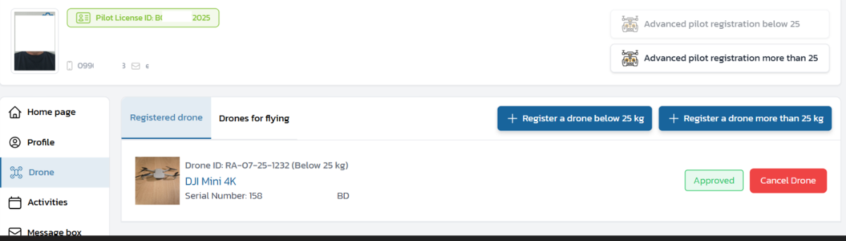 And not forget, you need to register your drone with CAAT (through the same uasportal.caat.or.th) Can only be done after taking out insurance, you need the policy number and you need to upload the insurance certificate you recieve from the insurer. This was also annoyingly hard, as there seems to be a max. size on both the PDF's and JPEGS you need to upload, but it doesn't say so, so you drag a too big file into the upload window and it simply does not do anything, no error message or anything! The penny dropped when one pdf did upload and I noticed it was way smaller then the rest! Reduced size of both pictures and PDF's (for the pdf's using an online compress tool). Then you need to affix the registration number to your drone (I printed it out with a Dymo, but simply writing with a permanent marker is also allowed). Then followed by registering the remote of the drone with NBTC, this last part I had done by feic, wher I also got the insurance. Can take up to 3 days but I had it in a few hours. This document is only valid until the date you are allowed to stay in country (they need a picture of your entry/extension stamp). Checklist before allowed to fly your drone: Drone pilots license (the online theory exam). Drone insurance Drone registration (with CAAT) Remote registration (with NBTC) One of the weird requirements before being allowed to fly, is to have a fire extinguisher at hand!