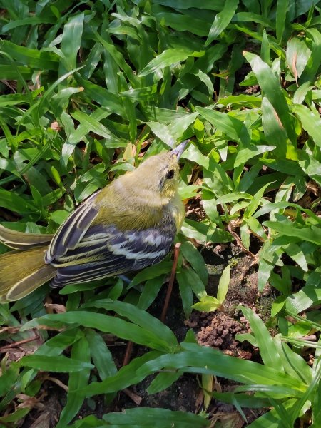 Can't fly far, but is getting around the garden ok. Adult bird watching but not coming to the youngster. 1772616662177.mp4
