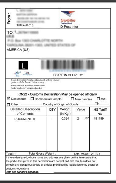 Did it eventually work? I'm trying to do the same but at the dpostinter.thailandpost site it keeps saying the tracking status is: "in progress" and I don't see anywhere to print out the customs form label. And did you first pay the customs duty? I attached a screen capture. How long did it take to get to the States? Thanks for any input on this