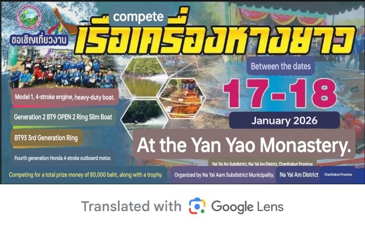 One more. 17 and 18 January at Na Yai Am on the border Chanthaburi-Rayong, directions for Google Maps to Samnaksong Yan Yao Thipak Pathibudtham, Na Yai Am, Chanthaburi 22160 https://maps.app.goo.gl/Zfwsp6WYKgVgB1jW9?g_st=ac