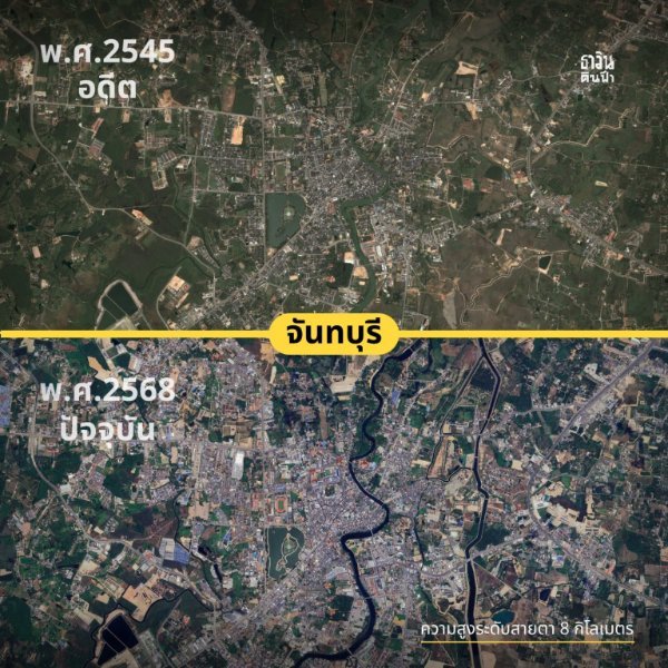 Aerial views of Chanthaburi city 2545/2002 and 2568/2025 showing the rapid growth of the city in 23 years. The canal has a series of dams; water storage and flood prevention to divert some of the river away from the central city area. Never-ending building, we've lived 15km away from the city since 2011 and our town also growing fast, when we moved here the road was two lanes, now a 4-6 lane highway is almost complete, 1km at time and now only 2km from us. Progress, and not such a sleepy place as when we got here. Still a great place to live for us.