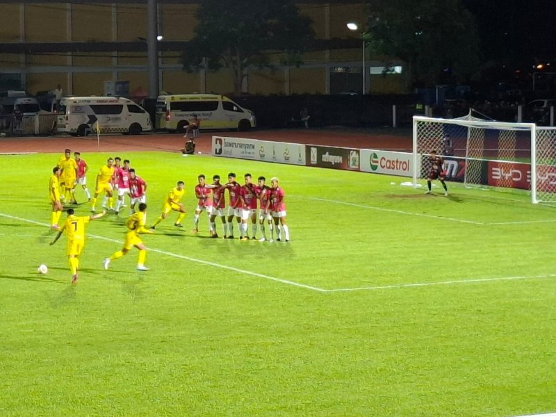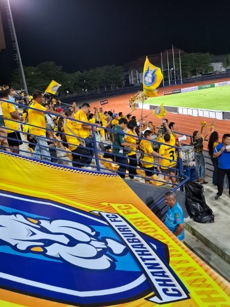 Saturday 30 Aug at the Chanthaburi Provincial Stadium for the local League 2 team's second home game of the season; first time we've been seated in the new covered grandstand (100 b entray fee, no reserved seats, get there early), an enjoyable evening out; Chan FC won 1-0: the kick in third photo was the winner.