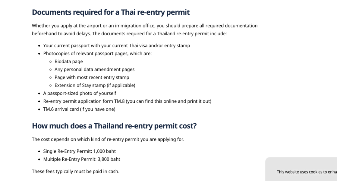 Good morning everyone....I will be obtaining a re-entry visa within the next couple of weeks at Jomtien immigration and just wondered if any of the criteria had changed since i obtained one last year. I have uploaded a screen shot of the criteria I have on file, just wondered if there were any additional forms like the stm9 and stm11 needed as well now. Also the TM8 form is on two pages, will they accept if I use front and back and just print on one sheet of paper or will they want two separate sheets. I would just like to add my thanks for the info i have received over the years and continue to receive regarding visas etc........its very much appreciated.....thank you.