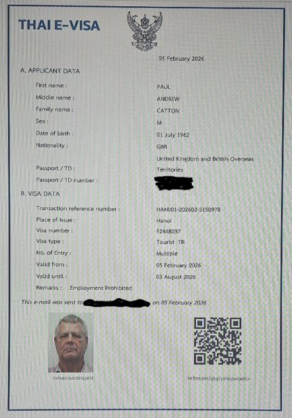 Following email sent to the Royal Thai Embaasy in Hanoi Dear Sir / Madam, I have just been informed by an automated email that you have cancelled my Visa Application lodged with the Royal Thai Embassy in Hanoi. Details as listed below.https://mail.google.com/mail/u/0?ui=2&ik=4e44e2387b&attid=0.0.1&permmsgid=msg-a:r4619335079257637340&th=19c0010ddb011c23&view=fimg&fur=ip&permmsgid=msg-a:r4619335079257637340&sz=s0-l75-ft&attbid=ANGjdJ_NnsqgRQsvUS4U6XPKkQUt6a7bifowOhJGHszBtPiAwTJqOzYBxYxihvbJyJYmtOpHEpI4CpqUrVAuQZFTllN1bLj5RDSNTdoPRc0PPHFgnZszERdUr42doRE&disp=emb&realattid=ii_mkv12uhb0&zw Please advise me of the reason for this cancellation, as it has a major impact regarding all the planning undertaken for my trip. It further jeopardises any and all travel to the Kingdom in the future, not only for myself, but especially for my wife (being a Thai citizen) and future visitation with her immediate and extended notable family I am hoping this is just an administrative error due to some type of miscommunication. I am readily available to present myself to the Royal Thai Embassy in Hanoi (until the 6th of February) to clarify any concerns that may have been held. Attached are further proof of substantial funds being my own Kiwisaver Investment & a further Term Deposit account. I await your advice and guidance in this matter. Yours Sincerely Paul Catton Not really expecting a response, so will front up to the consular office on Monday, while family go to Chiang Mai Immigration Office. I have advised Opal (currently at home in NZ) to cancel any thoughts of our spending further free time visiting Thailand, The hub of dysfunction.