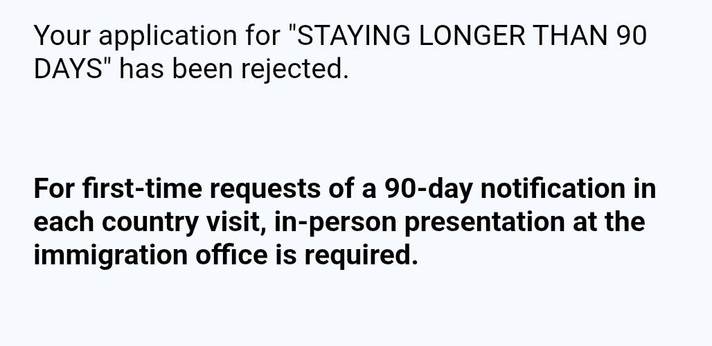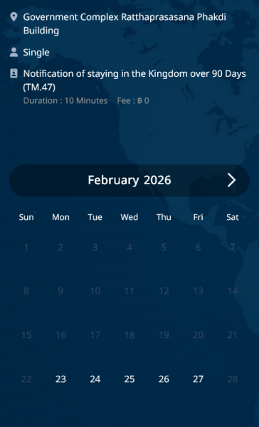 The first 90 day report after returning from abroad has to be done in person You can try it online but you will most likely get this rejection notice As @DrJack54 pointed out, consider the mail in option (if you have enough time left to postmark the packet 14 days before the due date) You need copies of: data page of your passport current extension stamp most recent entry stamp TM30 receipt previous 90 day report receipt A filled out TM47 application for 90 day report A self addressed stamped envelope (so they can send the 90 day receipt to you) Send the packet Thai Post EMS tracked mail to this address 90 Days Report Section Immigration Division 1 Government Complex Building B Floor 3 120 Moo 3, Chaengwattana Rd, Soi 7, Thung Song Hong, Laksi, Bangkok 10210 Don't panic if it takes a while to get the 90 day receipt back right now it's taking almost 4-6 weeks.. AND if by some chance you don't get it back before your next 90 day report is due, you can go to Chaengwattana, show the EMS confirmation of delivery and they'll accept that no issue and let you file a new 90 day right then