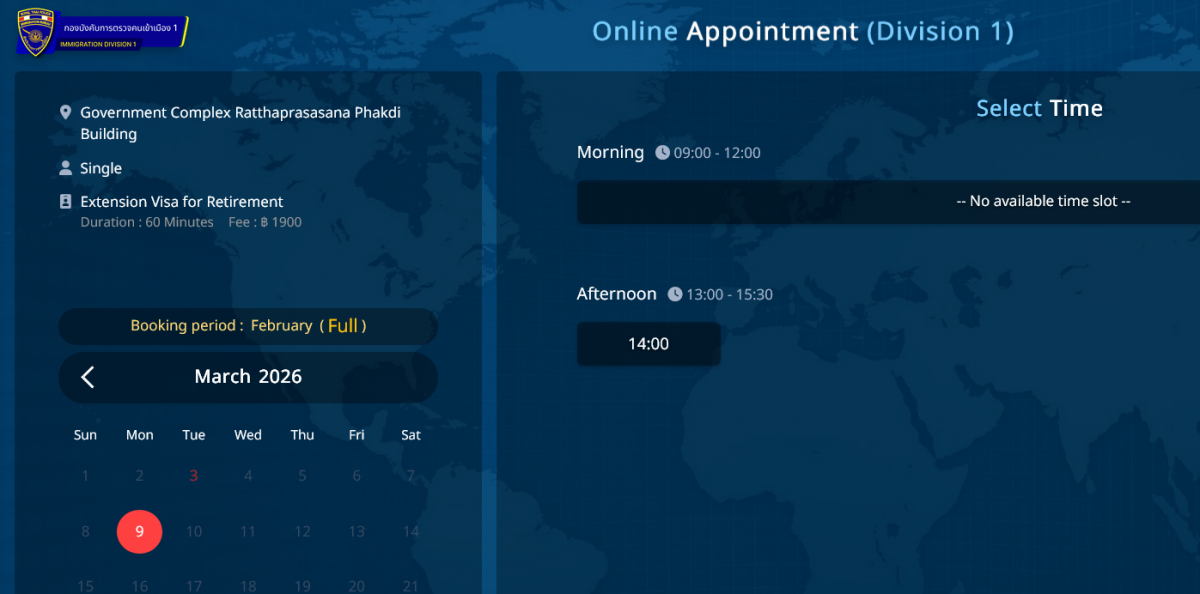 you're not getting up early enough to check (especially for retirement extension)😮 They update the system at midnight <- meaning that the openings for the day 30 days FROM today come available I've seen them booked up by 6 AM before ☹️ remember at C/W you can apply for an extension when you have 45 days or less left on your current stamp SO set an alarm in your phone 30 days BEFORE the date you wanna go for your extension, get up in the middle of the night and snap up a booking when they open up. Otherwise you show up, queue up with the zombie horde and wait it out like the rest of the peasants 🤣 NOTE: you can also check the system periodically because if someone cancels a booking it comes back up to be available.. I had a booking for about a month out, then saw one come up in just a week, so canceled the old one and snapped the earlier one You can definitely make a booking you just have to want to, and plan it out As @Upnotover pointed out there's one open for Mar 9 @ 2PM