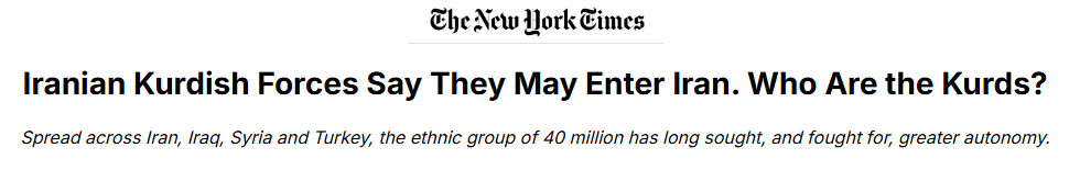 The entry of the Kurds into the war could have a significant effect. Kurdish forces don't show a lot of restraint and the civilian population of Iran is terrified of them. I imagine there would be 100% civilian flight from any area the Kurds invaded, which could only contribute to the pressure for regime change. Iranian Kurdish forces, based in Iraq, are preparing armed units that could be sent into Iran, potentially with U.S. support, in an insurgency that would open a new front against the Iranian government. Though the White House has denied that it agreed to any plan for the Kurds to launch an insurgency in Iran, the United States has a long history of working with Kurdish militias around the region. https://www.nytimes.com/2026/03/05/world/middleeast/iran-kurds-who.html
