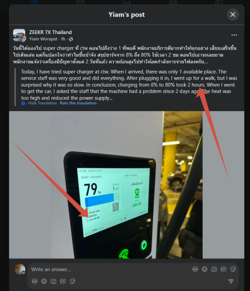 Thailand is simply not yet ready for EV prime-time, social media is replete with charging horror stories over the holidays, including from wife's trip upcountry to visit her parents. And then there is this - advertised at 400 kW, delivering 10% of rated output........ if all this does not change fast, EV glory in Thailand will fizzle out faster than a wet spark (pun intended) on a Musk(et).