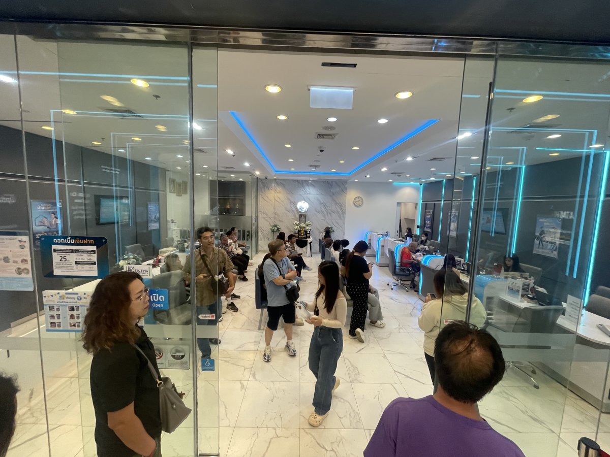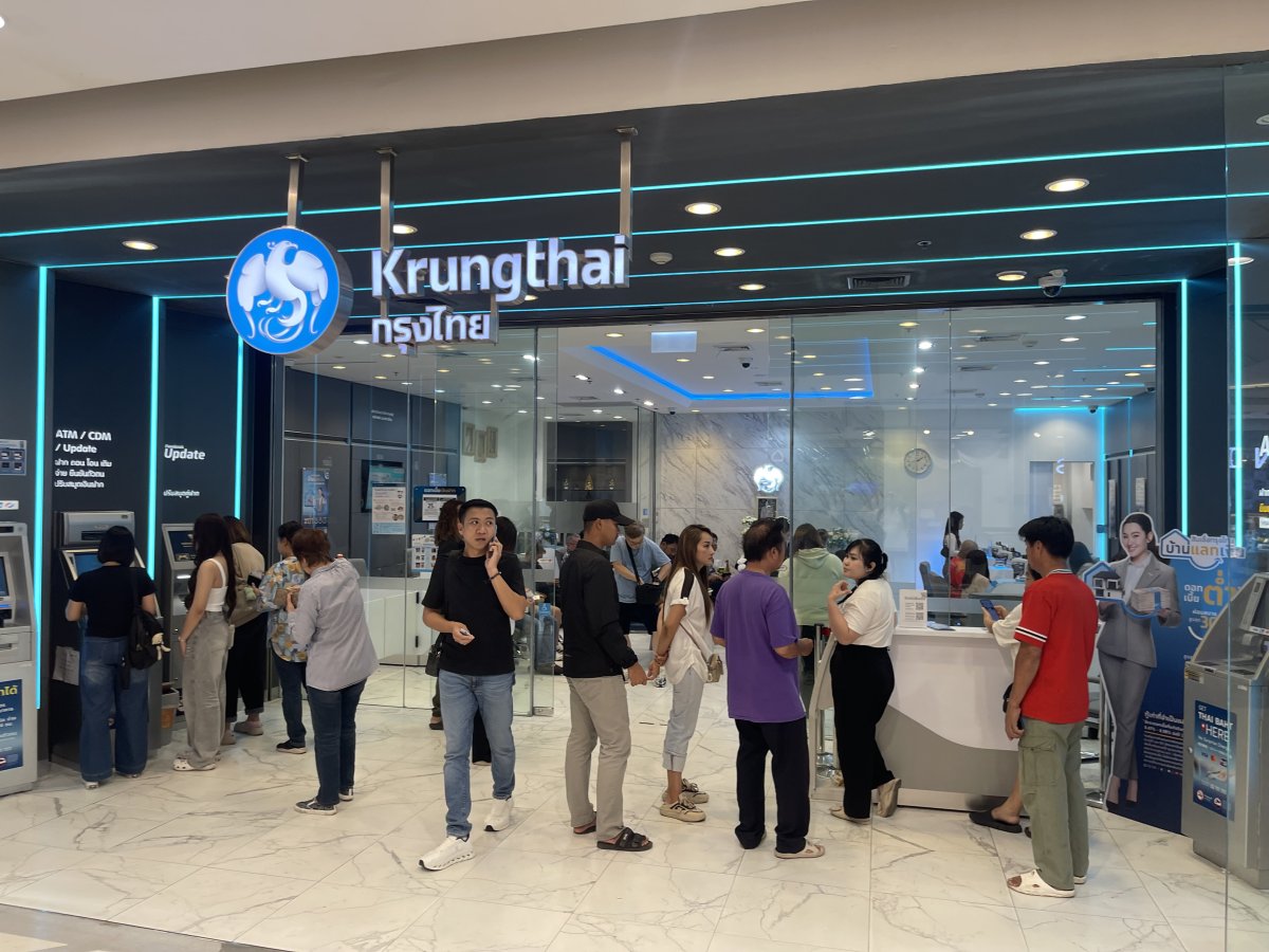Just another day at my local Thai bank. Inside? Full. Entrance? Full. Seats? None. People standing outside? Yep, you bet.