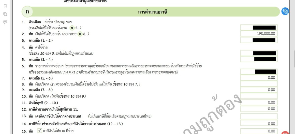That's the same link that I use. Here is a redacted image showing the 190K on the system generated PND91 provided by the eFiling system. The only thing I can think of that we did differently is that I didn't enter Tax credit info and you did. I chose not to bother with entering tax credit info for assessable income already taxed in my home country (UK) because my remittances to Thailand are lower than the sum of my Thai allowances, exemptions and deductions, so I don't pay Thai tax anyway.