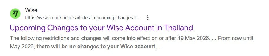 Upcoming changes to Wise operations in Thailand