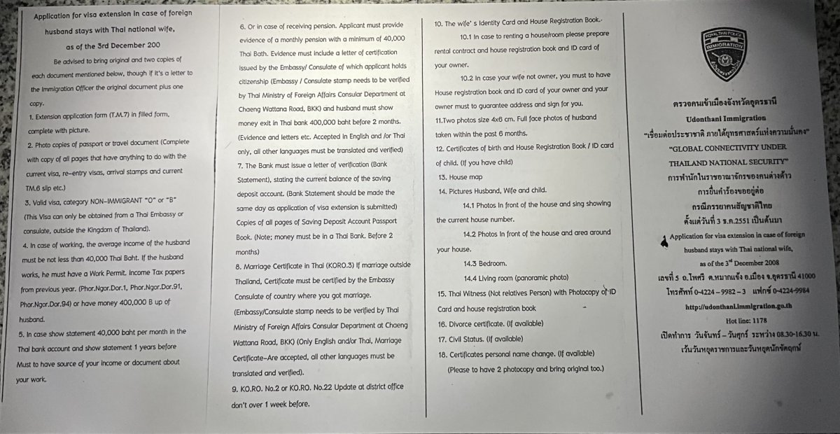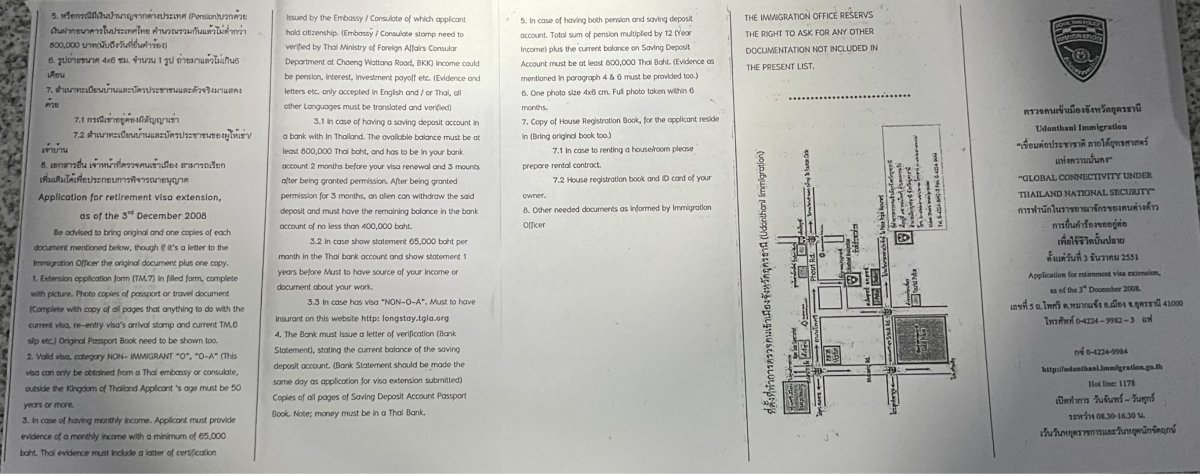 As attached is the English section of the forms for 1-Year Extensions based on being Married with a Thai women and based on Retirement that I received at Udon Thani Immigration on November 2nd 2025. Section 6. As for the Married version was somewhat confusing for me as it appears in the text that even if using the banked +400.000 Baht method on a Thai bank account. It looked like I would anyway need to get a pension income certificate from in my case the Swedish Embassy in Bangkok (which will stop issue these from October 1st 2026). But when asking a Immigration officer she told me that that is not required and that minimum 400.000 Baht as been on my account for minimum 2 Months is what’s required. I asked also if my ”Fixed Account” at Bangkok Bank - Udon Thani branch is approved to use as it is this account that I plan for use for my extension. I asked because as in the forms it says the money shall be on a ”Savings Account” . I showed my ”Fixed Account Passbook in my name only” and the Immigration officer informed me that my Fixed Account is ok to use. She did write on a paper in Thai that I shall give the bank as for get a 3-Month Bank Statement and also a Bank Letter (I guess) as my understanding is that both these documents are required by Immigration. As for proof we are married my wife visit’s the local district office (Amphur) in Udon Thani and they do thus issue a ”Marriage Register Document” as for us is a ”KOR 22” as we originally got married outside Thailand. As we did not got married in Thailand we don’t have any ”Thai Marriage Certificate” and besides that Immigration want either the ”KOR 2” (married in Thailand) or ”KOR 22” Marriage Register Document as it is this that proof we are still registered as married on the day of issuing the document.