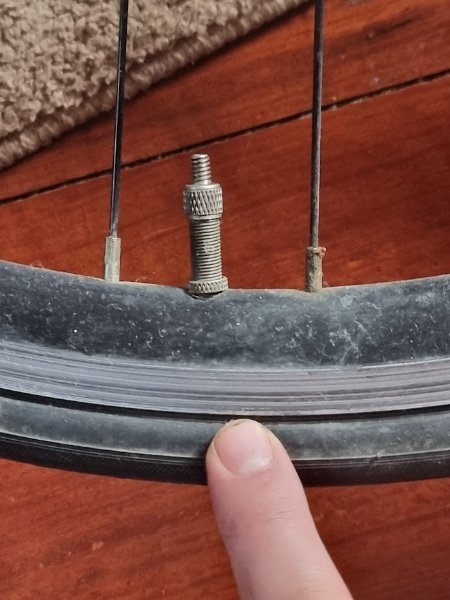 I know very little about bicycles and I'm trying to help friend who knows even less. Tire is marked 700 x 28C. I think I've identified the valve type as Dunlop but from the attached photo, it should be clear enough to anyone who knows their stuff. Note also that my fingernail is at the edge of the rim so it looks like this is a deep rim needing a long valve. When I go online, all I can seem to find is tubes with Presta type valves. Perhaps I don't know where to look. If this innertube/valve combo is not readily available in TL or likely to be unreasonably expensive, could the rim opening accept a Schrader type valve or a Presta with an appropriate adapter? I'm not even sure that Schraders are made long enough to suit this rim although I'm assuming Presta wouldn't be a problem. Finally if there is no easy solution or the appropriate inner tubes might be far more expensive long term, perhaps ditching the wheels for more conventional type might be a better solution. Thanks.