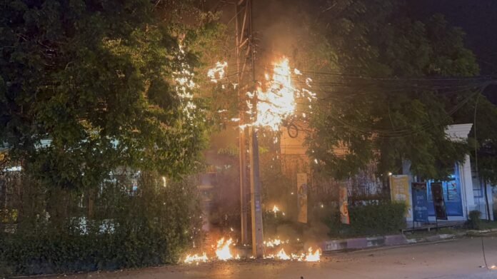 Short Circuit Sparks Fire in Pattaya Neighborhood By Tanakorn Panyadee Pattaya — A fire believed to have been caused by a short circuit erupted on telecom wires on Soi 4 Regional Land in Pattaya in the early hours of Friday, September 15th. Full story: https://aseannow.com/topic/1306759-short-circuit-sparks-fire-in-pattaya-neighborhood/
