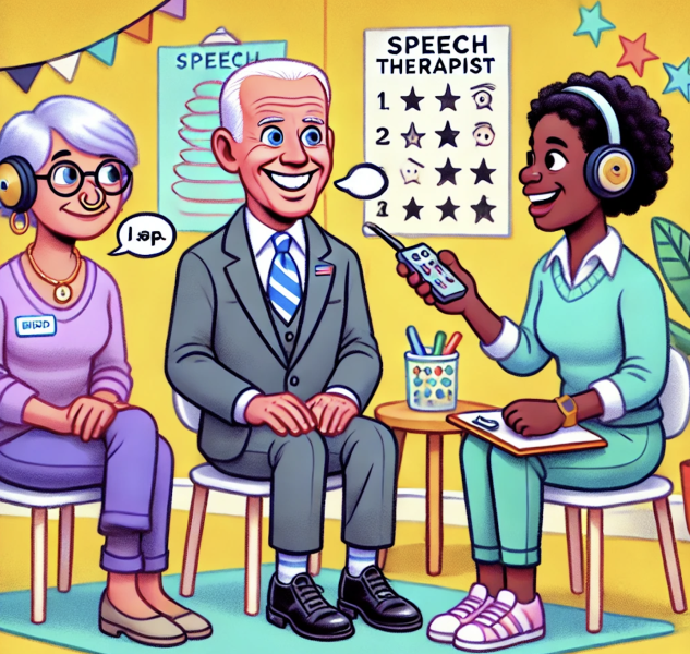 Another news blurb taken out of context. Biden was being helped by a speech therapist and her assistant, who taught him to speak those words, and it was edited out. Please only report the truth.