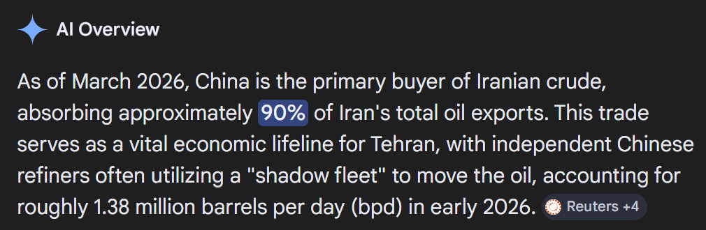 Considering CN only uses 16% of oil produced, and IR doesn't even make the top 5 exporters to, I don't think anyone would miss IR's oil exports, except IR. Y'all keep spinning- Leaving the bar stool ...