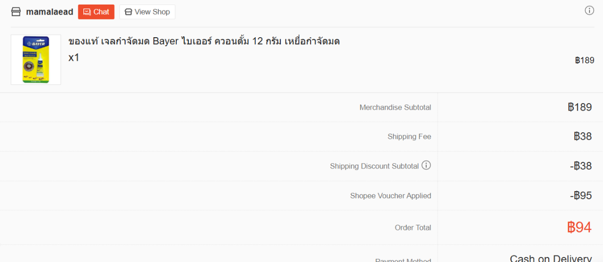 HomePro price ... ฿250 or on Shopee ฿94, if voucher available voucher on phone app ... https://shopee.co.th/ของแท้-เจลกำจัดมด-Bayer-ไบเออร์-ควอนตั้ม-12-กรัม-เหยื่อกำจัดมด-i.277812635.29570841901- Nature