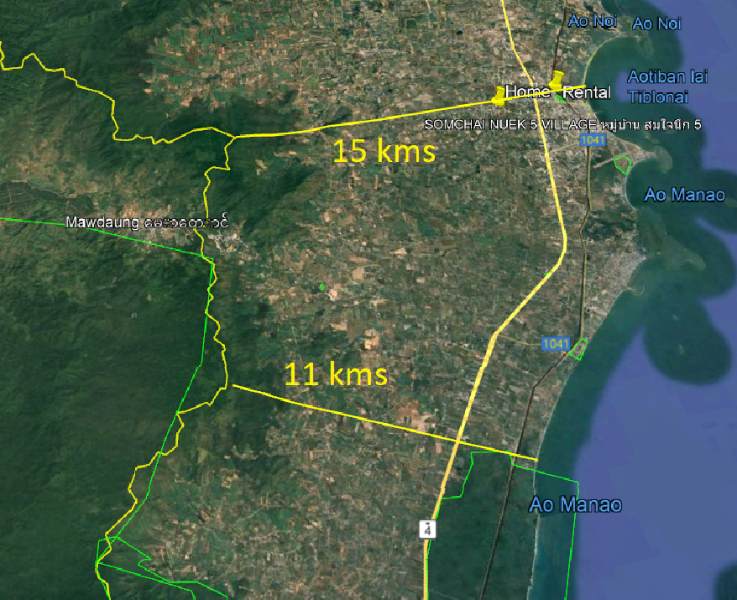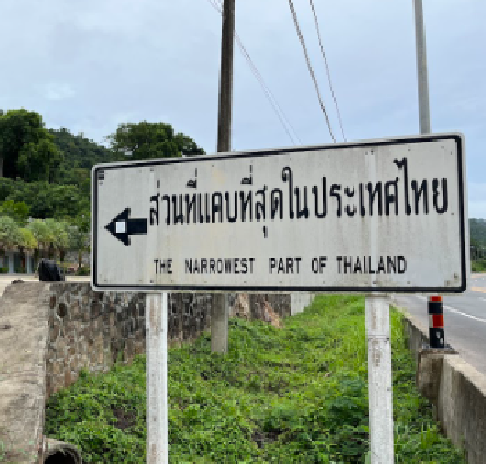 3. That's only 11 kms wide. Kind of nice for us, as we're just north of, also thin section (<15 kms). Have the surf & rolling hills <10 mins away. Snow Sand Kitchen is nice spot for a munch, as tallest peak in TH is right there. Food & pricing is OK, if in the hood. Other side (Cambo) near border check point, it's less than 1 km, I think. You can see an island out in the gulf @ 10 seconds ...