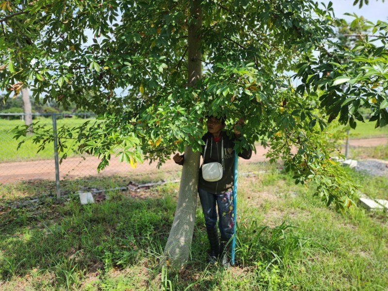 Nice healthy plant. No space for it? Thailand got international approval for export baobab fruits and products and the import value was 157 M USD last year. Beside I have 50 on my farm I found after 3 years a bag with 50 seeds in an old outside cupboard which the termites ground to flour. 50 potted 47 came up. The seeds are as tough as the trees themselfes. Our oldest tree is 5 years and yesterday we spotted it's developing 3 flowers. Very fast grower as well.. Wifey hugging her favorite Baobab which was to that time 3 1/2 years old, meanwhile the trunk is 30% thicker.