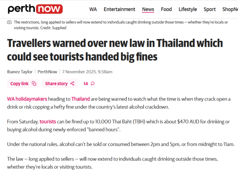Alcohol Sale Hours in Restaurants Under Review in Thailand