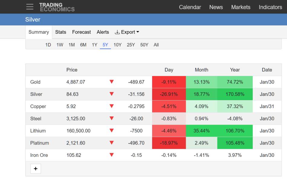 We are not in March yet, and silver didn't start 2026 at 26US$ and neither did it close at 78 US$ on Friday. https://tradingeconomics.com/commodity/silver