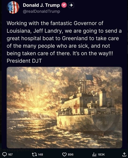 U.S. to send a "great hospital boat to Greenland"