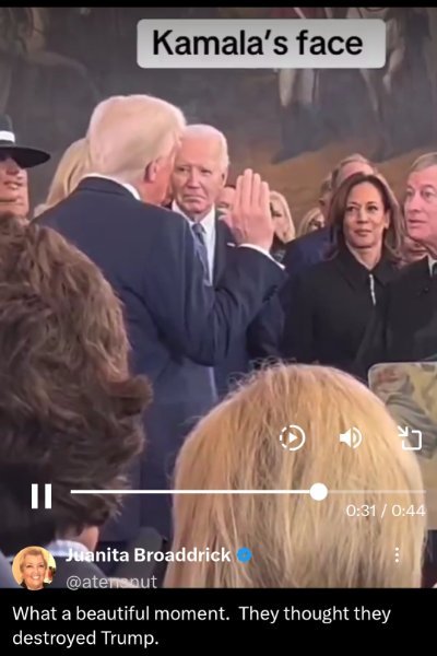 Singlehandedly destroyed the hapless democrat party of failure. He also destroyed Kamala turning her to mincemeat. If you look at her smug dumb as a rock facial expression, you're witnessing the silent cackle queen chocking on her turd sandwich as she watches MAGA Trumps inauguration.