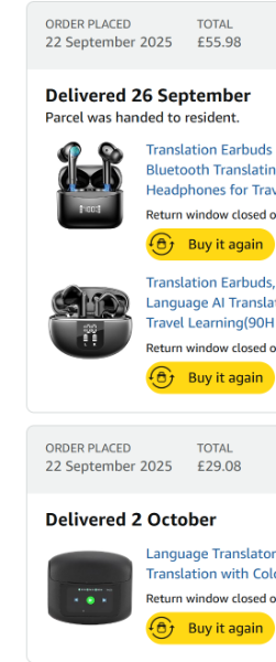 After seeing the new Apple AirPods doing live translation, I bought three sets of cheap Chinese ones to try out before pulling the trigger on buying the Apple ones and I've been very impressed with the speed with which they can do the translation so I'll just stick with them until I upgrade my IPhone [The translation feature on the Airpods requires Apple Intelligence which my IPhone doesn't support] All three sets use the same app on your phone