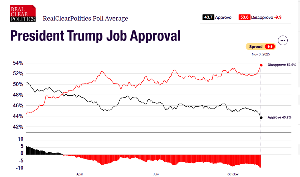 You must do very little reading and be very selective about what you read. Care to share your sources? Or maybe you should just stop making things up: https://www.natesilver.net/p/trump-approval-ratings-nate-silver-bulletin Even polls that usually give Trump positive numbers like Rasmussen and RMG have him negative. And as for issues: https://www.natesilver.net/p/trump-approval-ratings-nate-silver-bulletin