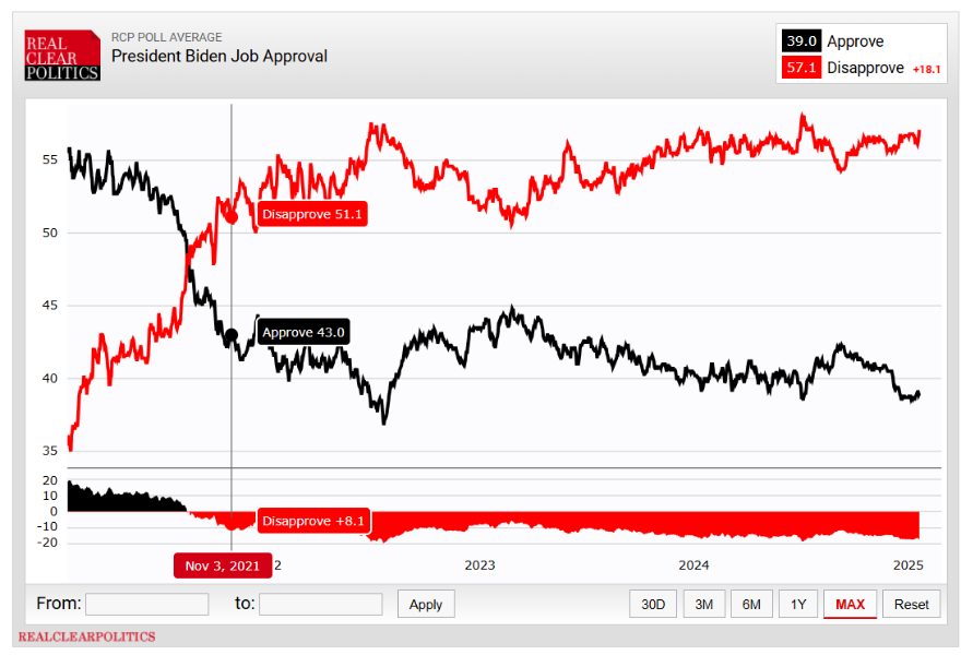 https://www.realclearpolitics.com/epolls/other/president_biden_job_approval-7320.html https://www.realclearpolling.com/polls/approval/donald-trump/approval-rating