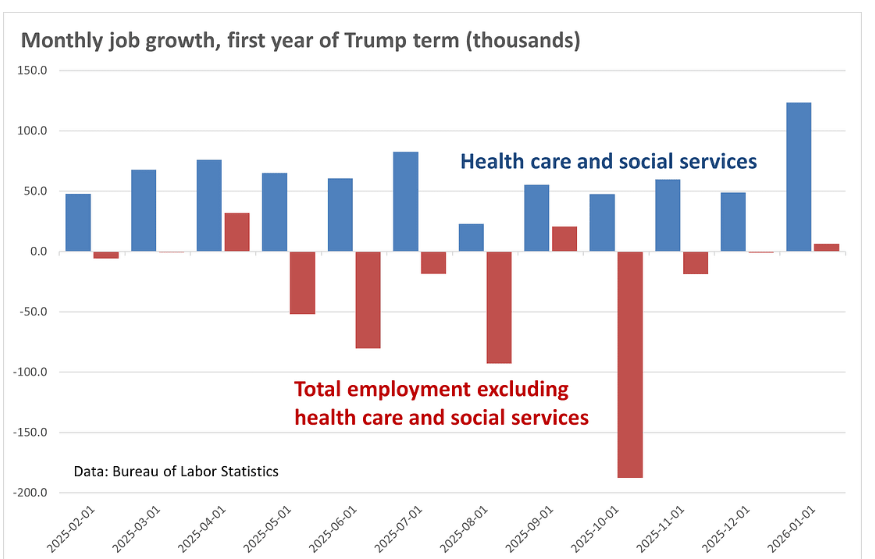 Here's an interesting graph. If health service jobs are excluded, jobs were lost for a total of 9 months in 2025 https://paulwaldman.substack.com/p/trump-will-never-stop-dragging-the