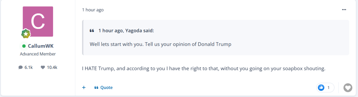 So, you can't come up with evidence And when I come up with a non-Trump comment I posted an hour ago, you try to make it about the NY Times instead of honestly acknowledging that you got it wrong. You've got less than nothing.