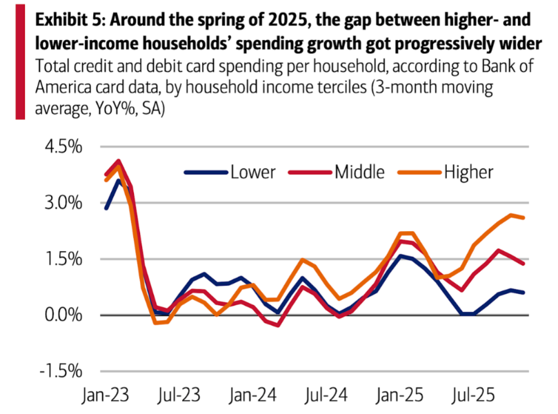 The thing is, this jump is due solely to 2 factors: increased spending by the wealthiest Americans and a increased spending on AI. So most Americans aren't feeling the joy. Consumer spending powers the US economy. A K-shaped economy will further test this dynamic in 2026. https://www.aol.com/finance/consumer-spending-powers-us-economy-110830206.html The AI boom has powered the US economy to its fastest growth in two years, with GDP expanding by 4.3pc in the third quarter. The economy picked up sharply from the 3.8pc growth of the previous quarter, and brushed past economists’ expectations of a 3.2pc increase. The growth was driven by record investment in data centres, alongside a 3.5pc jump in consumer spending as the AI-fuelled stock market boosted household wealth. https://finance.yahoo.com/news/us-economy-booms-ai-investment-162521861.html
