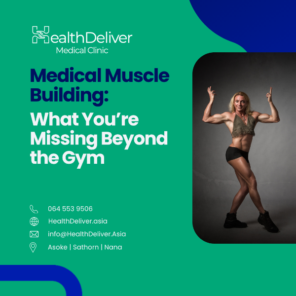 Gaining muscle isn’t just about lifting heavier or eating more. If you’re not seeing the gains you expect, it might be time to look at your hormones, nutrition strategy, and how well you’re actually recovering. 1. Check Hormones Before You Train Hard Testosterone is one of the most important hormones for muscle growth. But it’s not the only one. Imbalances in growth hormone, SHBG, or IGF-1 can sabotage progress, especially in men over 30. Start with two early morning testosterone tests, and don’t skip SHBG—this gives a clearer picture of your bioavailable testosterone. Obesity, poor sleep, and common medications like opioids can all lower your levels. Fix what’s reversible before jumping into testosterone therapy (TRT). 2. Fuel Your Body Right To build muscle, you need the right fuel—not just calories. Focus on these numbers: Protein: 1.6–2.2 grams per kg of body weight per day, split over 3–4 meals. Carbs: Around workouts, they help power your sessions and refill muscle glycogen. Fat: Supports hormone production and recovery. Don’t go too low. Micronutrients matter too. Low vitamin D or zinc can reduce testosterone and stall growth. Creatine and omega-3s are also backed by evidence to support strength and repair. 3. Sleep and Recovery Are Non-Negotiable Sleep is when your body rebuilds. Without 7–9 hours of quality sleep, your body won’t release enough growth hormone. That means poor repair, lower testosterone, and higher cortisol—none of which help muscle gains. Build in deload weeks, active recovery, and don’t overtrain. Use tools like heart rate variability (HRV) or subjective fatigue to adjust your training load. 4. Reduce Inflammation to Grow More Chronic inflammation—often from stress, poor sleep, or diet—can break down muscle and blunt recovery. Eat anti-inflammatory foods, prioritize omega-3s, and don’t rely on NSAIDs unless you really need them. Avoid high-dose antioxidant supplements around workouts—they can cancel out adaptation. 5. Don’t Ignore Pain or Hormonal Symptoms Muscle strain, fatigue, or low libido aren’t just annoyances—they’re signs something might be off. Don’t push through. Get assessed. Medical issues like sleep apnea, hypogonadism, or low-grade inflammation could be holding you back. About HealthDeliver Clinic Bangkok HealthDeliver Clinic is a leading English-speaking medical provider in the heart of Bangkok, offering trusted care for expats, travelers, and locals alike. From hormone optimization and blood testing to general health checks and IV therapy, our expert team is committed to providing personalized, evidence-based care tailored to your goals—whether that's peak fitness, weight loss, or overall well-being. Book appointments online or walk in 7 days a week. Book Here