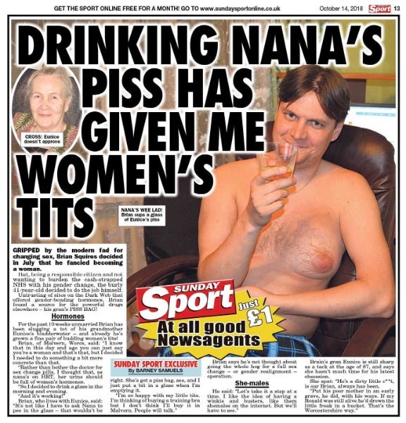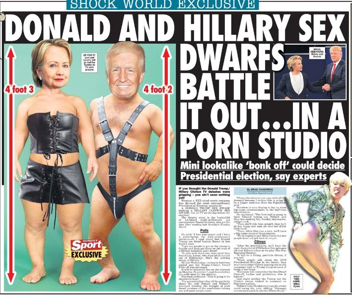 The Sunday Sport. Unbiased, vital public interest stories concerning US politics, UK trade policy, consumer protection laws and drinking Gran's piss.