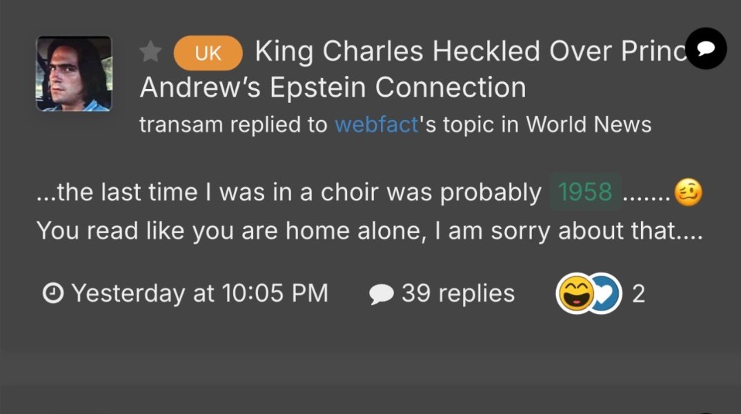 About what? Proving you’re a liar in front of the forum? On the choir, 1958 subject. The proof is all in text. Typed by you