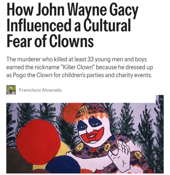 10. Your fetish is even stranger than I could ever imagine. First Gavin Newsom. Now clowns. Gacy had the same fetish.