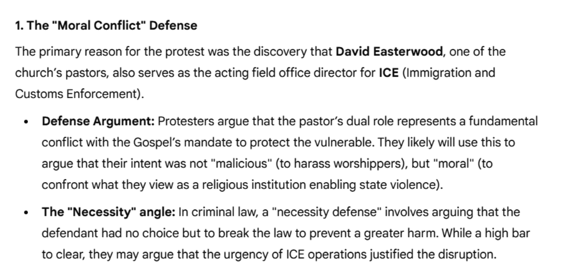 One of those in the 'Don Lemon' indictment is NEKIMA VALDEZ LEVY-ARMSTRONG Per https://en.wikipedia.org/wiki/Nekima_Levy_Armstrong "Levy Armstrong was a professor of law at the University of St. Thomas in Minneapolis from 2003 to 2016." NB Hard to believe she did not know what she was getting herself into whether Pastor Easterwood was also an ICE guy or not.