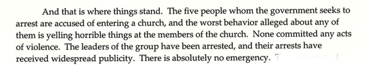 Washington Post via https://archive.ph/lJJKO#selection-607.0-607.114 The chief federal district judge in the state, Patrick J. Schiltz, a well regarded conservative who began his career as a law clerk to Supreme Court Justice Antonin Scalia, subsequently reviewed the matter and wrote of Lemon and his producer that “there is no evidence that those two engaged in any criminal behavior or conspired to do so.” Kyle Boynton, a former federal civil rights prosecutor, said there is no precedent for using these sections of the federal criminal code to accuse private individuals — as opposed to the government or a government official — of violating someone’s religious rights. “I think they are going to face a serious uphill battle getting this case past a motion to dismiss,” Boynton said.