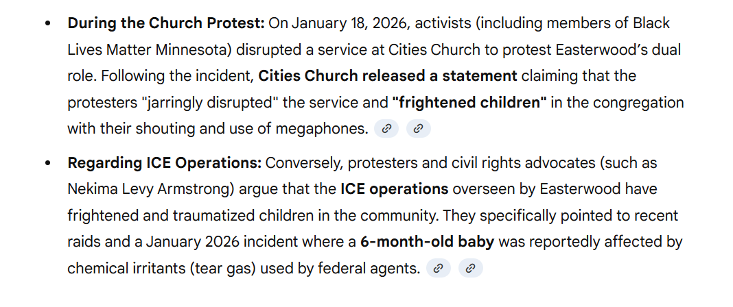From the CBSNews link above: Protesters against ICE enter St. Paul church service Protesters said they entered St. Paul's Cities Church on Sunday, after discovering that an Immigration and Customs Enforcement official appeared to be one of the pastors at the church.