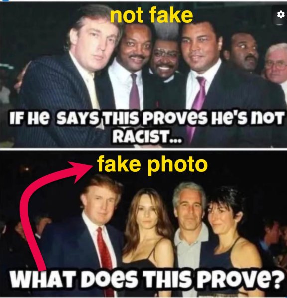 its altered. deal with it, or cry a little harder for your embarrassed and ignorant pal for his and your lack of "logic" Genuine photos of Trump with Epstein and/or Maxwell do exist from social events in the late 1990s–early 2000s (e.g., Mar-a-Lago parties, fashion shows), often including Melania or others, and some appeared in verified archives or file releases. But this particular version—with this grouping, poses, attire, dim lighting, and alleged Bloomberg tie—is not real; it's a manipulated or fabricated edit circulating without credible backing. AND, it proves nothing more than them being photographed together at a social event in 2000, amid a documented but limited acquaintance that ended years before Epstein's convictions. Any further implications are speculative and not supported by the image or verified records.