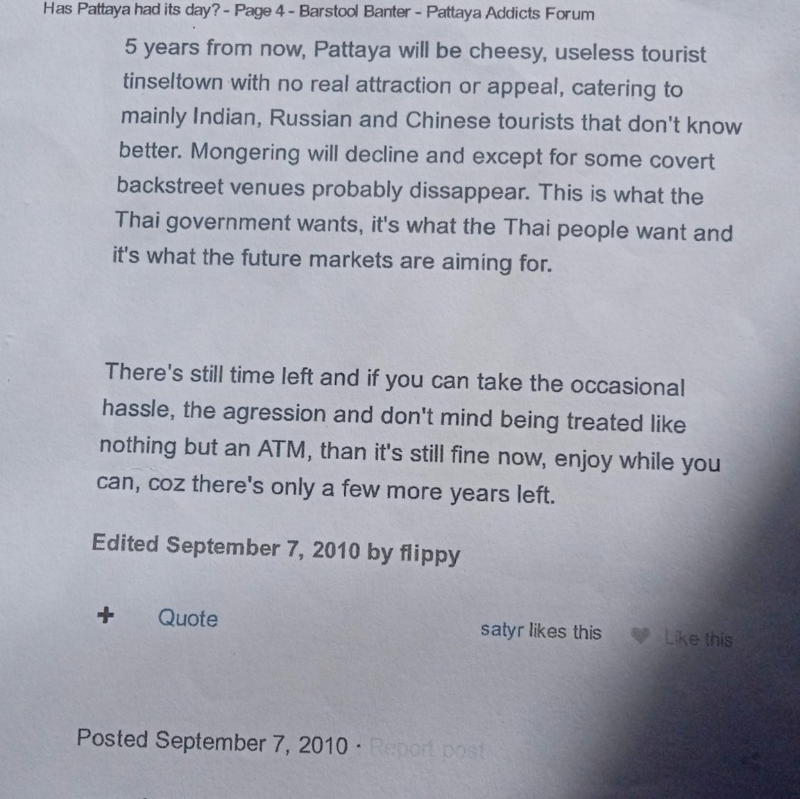 Meanwhile back at the ranch: This is what one very astute member on another forum said about Pattaya way back in 2010
