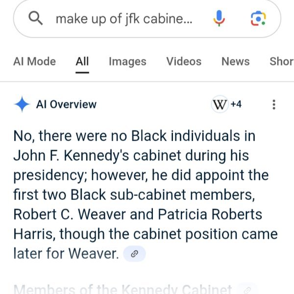 Right all these people got just make them look like the fools they are. The cabinet of president Kennedy was all white too. Anyway just leave them to their troubles - because they got them.