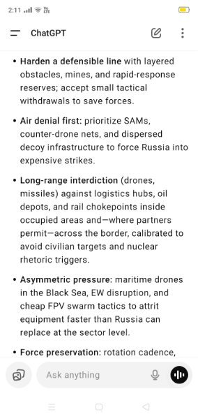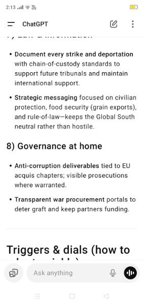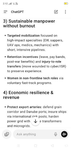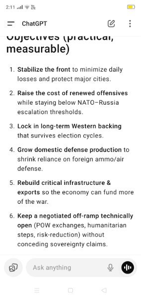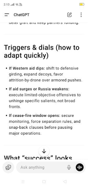 Yes a simple analysis. Options one or the other. If ya all want this war to go on forever then ChatGPT can give all the options.https://chatgpt.com/share/68ac0a5d-f210-8003-863c-acfae2ba1cac- Zelensky vows to continue fighting as Ukraine marks independence